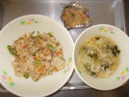 今日のシュウマイの材料は、たら、むきエビ、鶏肉、長葱、干ししいたけ、グリンピースと具だくさんです。たらとむきエビが多めに入っていたので、プリっとした食感に仕上がりました。