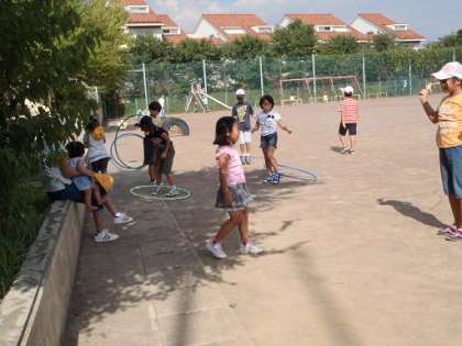 一輪車、なわとび、フラフープなどで遊んでいました。