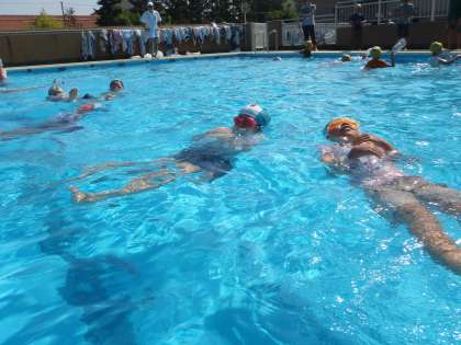 ペットボトルなどの浮くものを抱えて背浮きをしました。