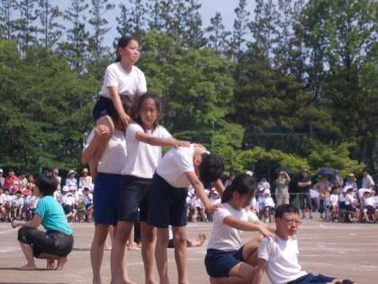 砂埃が舞う中で長い時間練習を続け、本番では難しい技を成功することができました。