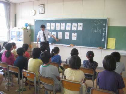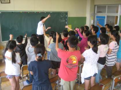 子供たちは、リョウスケ先生との外国語の授業をいつも楽しみにしています。