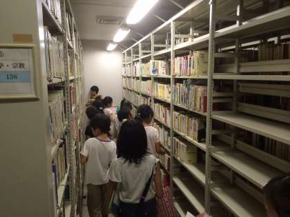 図書館では、書庫に入りました。8万冊という本の多さにみんな圧倒されていました。