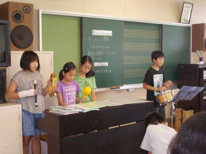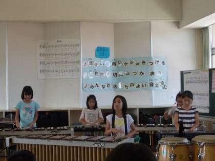音楽の授業で、「ル・バンバ」の曲をグループごとにアレンジして発表するという授業を行いました。グループごとに練習を一生懸命行い発表した後は、それぞれの良かったところを伝え合いました。音楽のすばらしさを改めて感じさせられる授業でした。