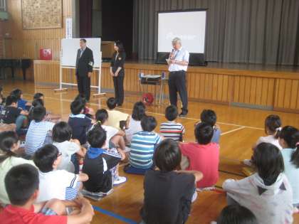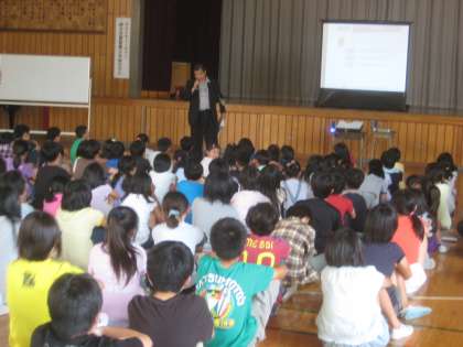 携帯電話やパソコンなどでインターネットを使用する中には、危険がたくさんひそんでいます。子供たちは自分の身を守るために静かに話を聞くことができました。