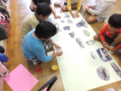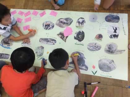 先週の遠足で見た動物の動きや様子をを思いだしながら、模造紙にまとめました。