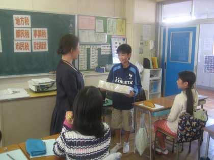 税金の種類について学んだり、1億円の重さを体験したりしました。