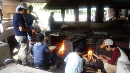 こすもす宿泊学習12火おこし、野外調理