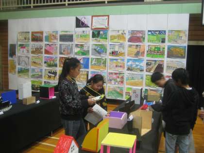 土曜日の保護者鑑賞日には、思いを込めて作った作品を(工夫したところ・大変だったところなど)一生懸命ガイドしました。