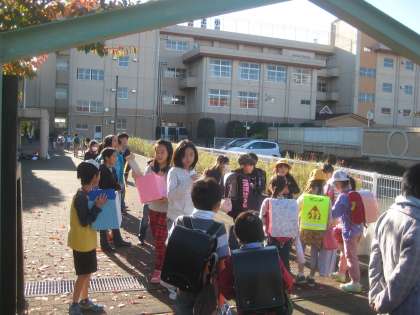 代表委員の児童は、校内にポスターを貼ったり、校門前で大きな声で呼びかけを行ったりしました。