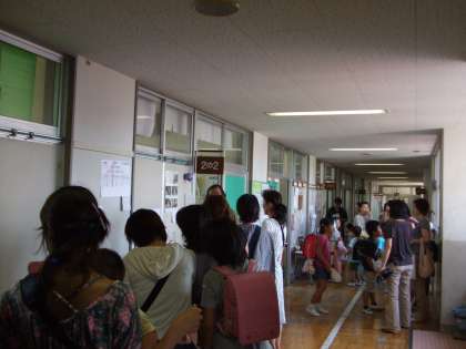 今回は、台風災害による教室での引き渡しを想定して行いました。災害等による引き渡しの方法として、校舎内で行う場合と校舎外で行う場合があります。