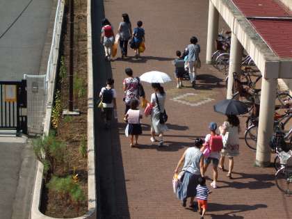 今回は、校舎内での引き渡しを学びます。校舎内をどの方向からでも動けるようにしたことや、高学年から順に下の学年への引き取りを再度確認をしたことが昨年と違うところです。