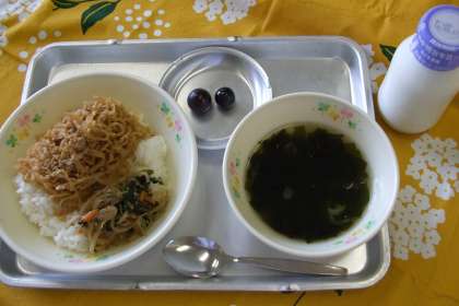 主食:ビビンバ(切干大根入り)、副菜:わかめスープ