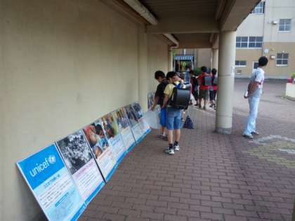 月曜日の全校朝会でお知らせした,ユニセフ募金が始まりました。