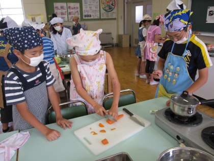今回は包丁を使ったり、野菜の種類によってゆでる時間を変えたりと、少し難しい調理に挑戦しましたが、みんなで協力してしっかり最後まで取り組むことができました。
