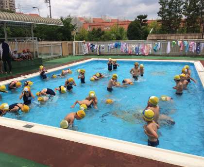 小学校に入学して初めてのプールで、とても楽しそうでした。