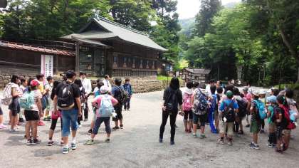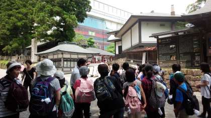 1時、日光東照宮の見学です。曇り空になりましたが、雨にならずに見学できそうです。2つのグループに分かれて、まず、は八王子ゆかりの千人どうしんの灯ろうから、ガイドさんの説明が始まりました。