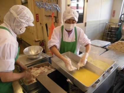 豚肉にたまご、小麦粉、パン粉をつけます。