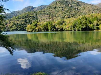 まず、湯ノ湖畔を歩いて湯滝へ。