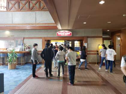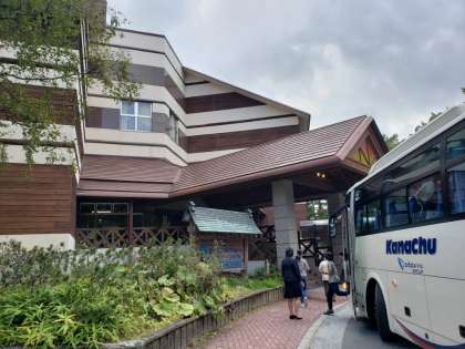 ゴールからバスに乗り、五分で昼食場所のアストリアホテルに着きました。