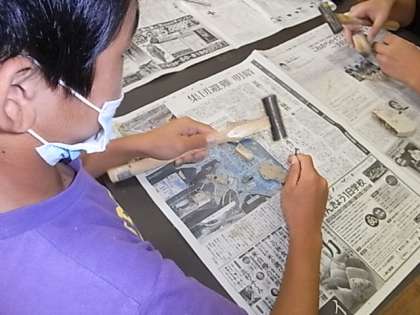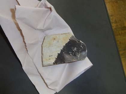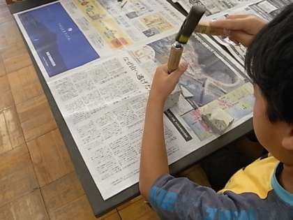 現在、6年生は理科の時間に「土地のでき方」などについて学習をしています。今日は、「化石ができた場所」という学習を行いました。教科書や資料写真を用いて覚えるべき内容を学習した後、「それではみなさんにも化石発掘を行っていただきましょう。」と、栃木県から取り寄せた岩石を調べました。運のよかった児童は、「やった!化石発見!」と、本物の化石を見つけ、家に持ち帰ることができました。