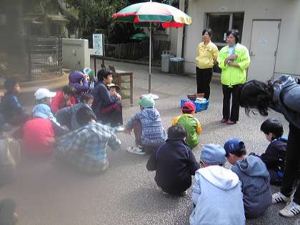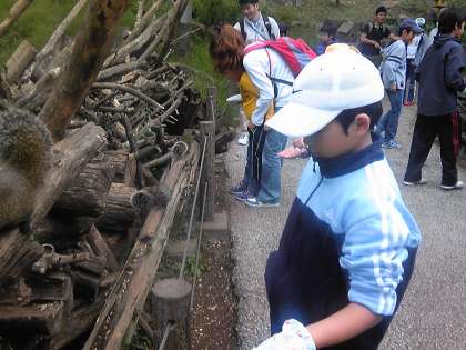 りす園に到着しました。掌にひまわりの種をのせると、勢いよくリスが食べにきました。