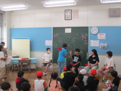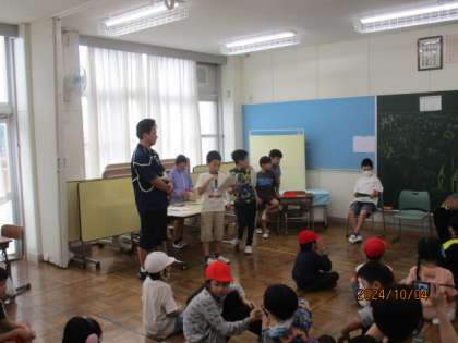 プレイルームで、お誕生会をスタートしました。まずみんなからのプレゼント進呈があり、その後、体育館に行き、鬼ごっこを楽しみました。