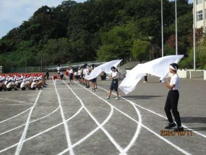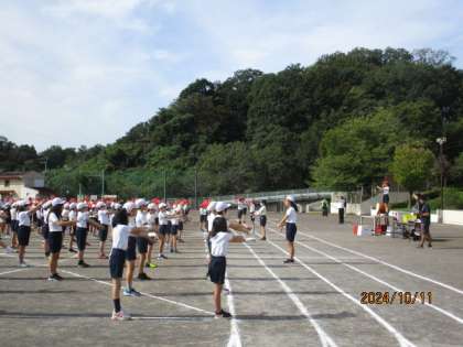 来週の運動会に向けて、開会式や応援合戦、準備運動の練習をしました。高学年の子供たちが全校を引っ張ってくれました。