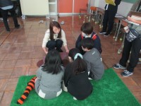 「モルック」というボウリングとカーリングを組み合わせたゲームをしながら、友達と作...