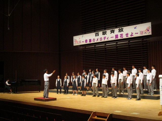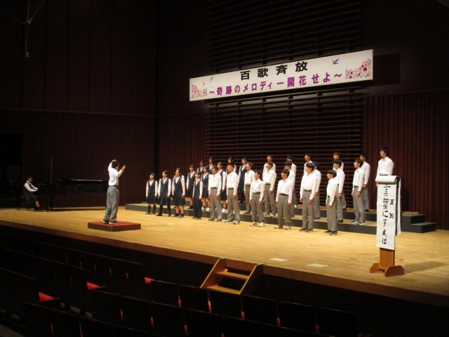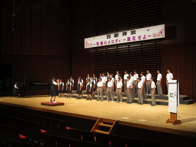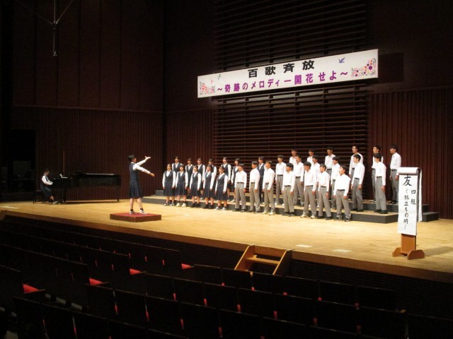 合唱コンクール本番3年生です。中学校生活最後の学年合唱「大地讃頌」は圧巻でした。1・2年生も先輩の厚みのある歌声に感動していました。クラスごとの歌も甲乙つけがたい出来栄えでしたが、最優秀賞は3年5組が受賞しました。おめでとうございます。他クラスもよく頑張りました。