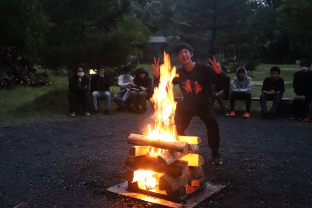 1組の移動教室が始まりました。1日目は横浜港付近の散策の後、中華街で昼食を食べ、午後は「カップラーメンミュージアム」で自分好みのカップヌードルを作りました。今日は「高尾わくわくビレッジ」に宿泊です。夜はキャンプファイヤーで盛り上がりました。