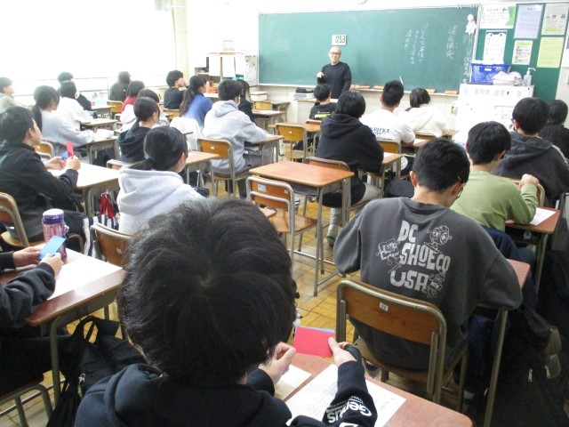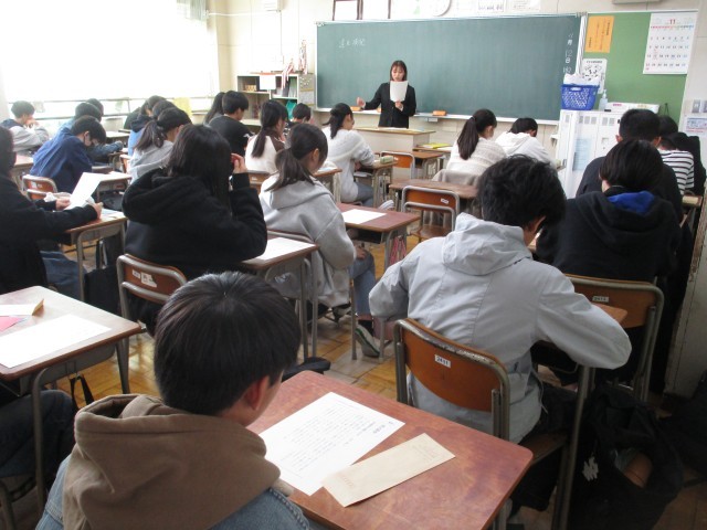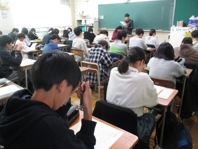 2年生の道徳授業は交通違反の摘発の新聞記事を受けて、「法やきまりの意義」について話し合った。