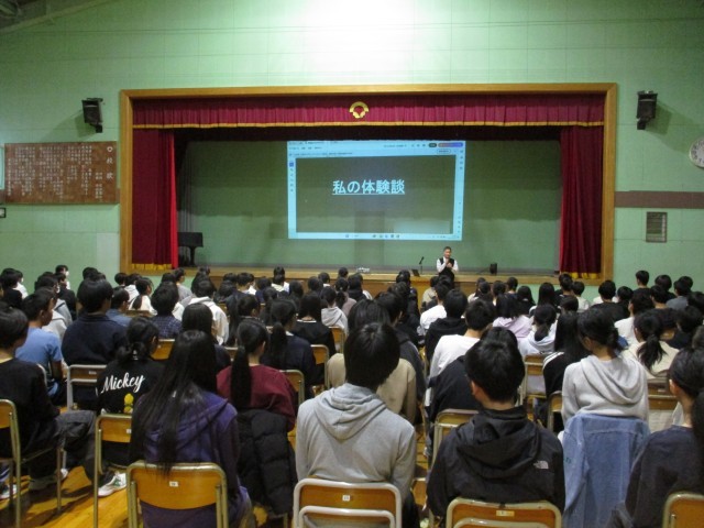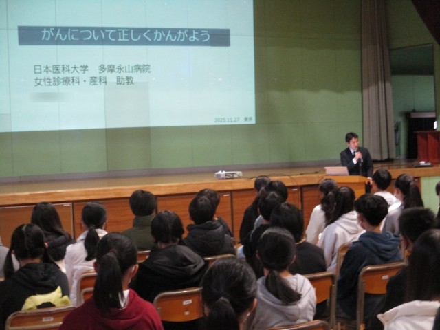 今日は日本人の二人に一人がかかる病気である「がん」について学びました。校長先生のお話の後、日医大多摩永山病院の現役医師の方から「がん」という病気について、そして「がん治療」の現状についてお話がありました。続いて実際に「がん」にかかった体験のある方からご自身の経験を語っていただきました。生徒たちは自分事としてしっかりとお二人の話に耳を傾けていました。