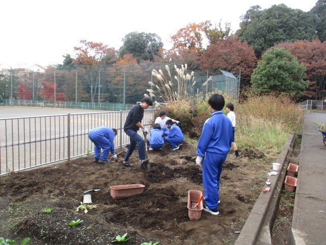 1組は外回りの作業で通路・側溝の清掃と、畑を広げる開墾作業を行いました。