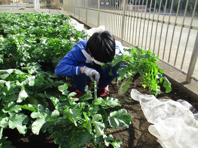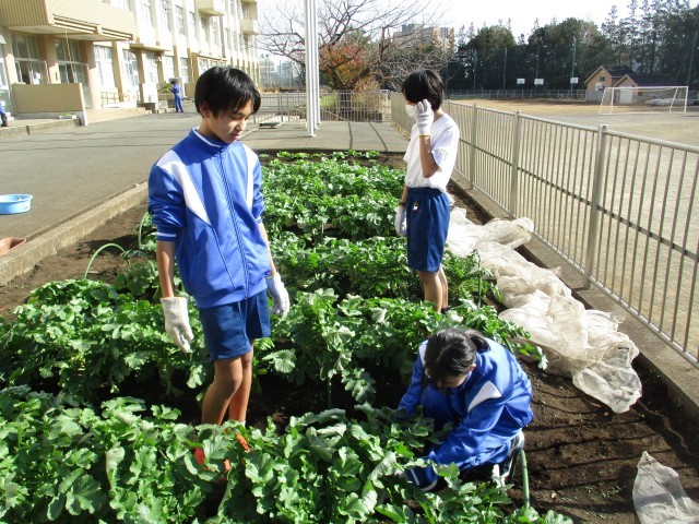 9月に種を蒔き、丹精に育ててきた大根が立派に育ち、いよいよ収穫時期を迎えました。収穫した大根は調理実習でお味噌汁にしてみんなでいただきました。