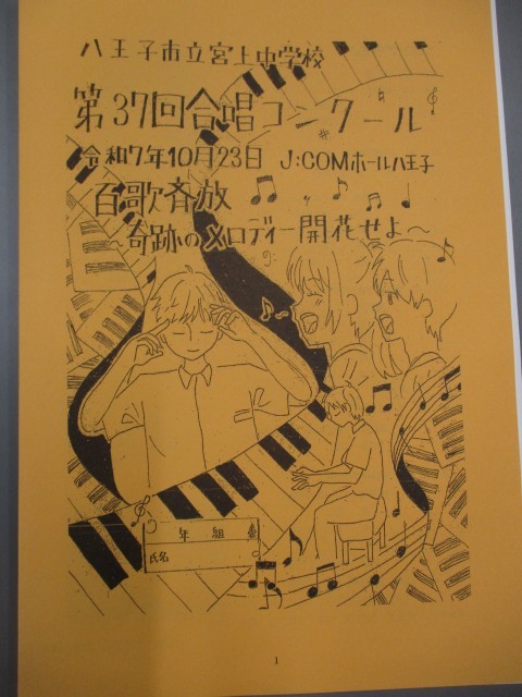 10月に入りました。宮上中学校では1組・1年生の移動教室、2年生の校外学習と校外行事が続きます。そして10/23には久しぶりに「J:COMホール」にて全校合唱コンクールが行われます。
