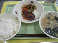 ☆今日の献立☆・ごはん・さばの七味焼き・野菜の彩り和え・みそ汁・牛乳