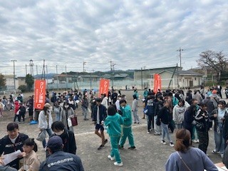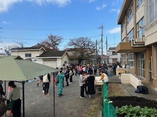 弐分方小学校からは児童、保護者、学童職員と多くの方々が参加しました。終わった後は焼き芋、スープ、近くの大手コーヒーショップからの飲み物の差し入れをいただきました。
