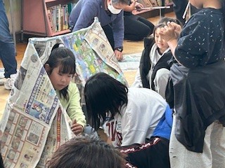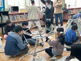 11/29 展覧会2日目「たてわりあそびじゅつ」① 公開日 2025/11/29 更新日 2025/11/29 学校生活より 2日目は保護者鑑賞日。高学年の発表と造形あそび「たてわりあそびじゅつ」、午後は大学生によるワークショックです。まずは、新聞紙を使った「ポキポキタワー」です。 いいね(0)