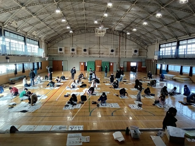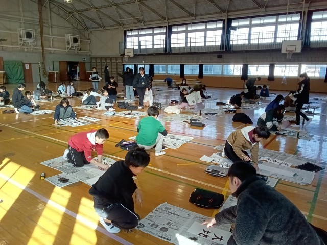 書初め 公開日 2026/01/09 更新日 2026/01/09 学校生活より 昨日の始業式後から、各教室では書初めを行いました。今日は5年生が体育館で、箏曲「春の海」をBGMにしながら、集中して書初めを仕上げていました。児童の力作は、校内書写展で掲示しますので、1月23日金曜日、24日土曜日の学校公開日にぜひ御覧ください。※写真は5年生の様子です。 いいね(0)