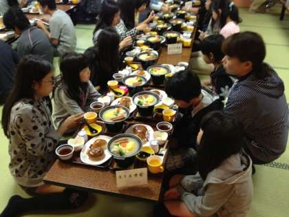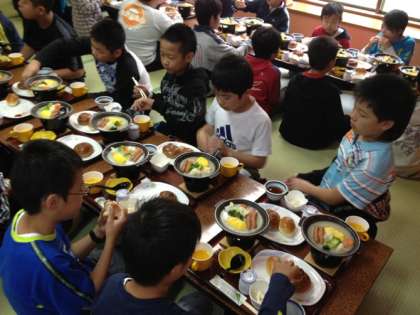 宿舎での最後の食事です。 今日は洋食です。 おいしくいただいています☆