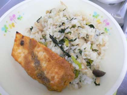 ツナときのこのピラフは、具をみマヨネーズで炒め、醤油