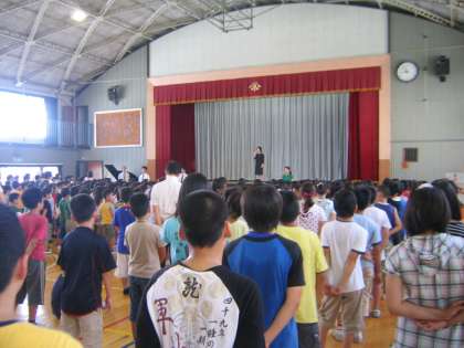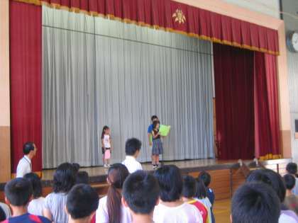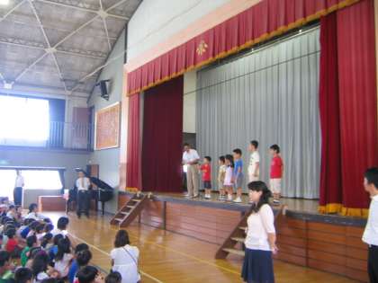 1学期終業式 公開日 2010/07/20 更新日 2010/07/21 学校行事 7月20日(火)、1学期の終業式が行われました。 校長先生のお話の後、3年生と6年生の代表児童が、1学期にがんばったことを発表しました。 また、終業式の後、残念ながら1学期で弐分方小学校から転校するお友達と、お別れをしました。 健康と安全にくれぐれも気をつけて、楽しく、充実した夏休みを過ごしてください。 8月26日に、元気で会いましょう☆ いいね(0)