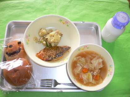 鯖にマーマレード、しょうゆ、砂糖、しょうがなどでつけこんで焼きました。