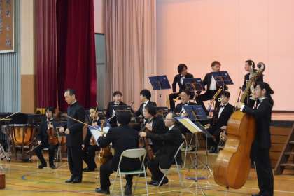 本日、弐分方小学校の体育館には綺麗なハーモニーが流れました。東京スカイライン・オーケストラの皆様をお迎えして、音楽鑑賞教室を開催しました。