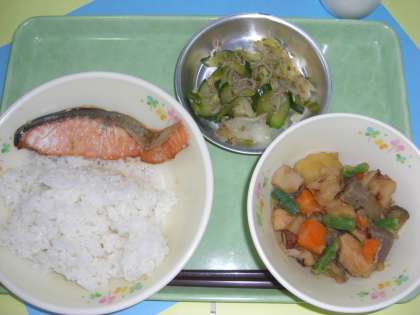 7月11日(木)今日の給食 公開日 2019/07/11 更新日 2019/07/11 給食室より 7月11日(木)<今日の献立> ・ごはん ・鮭の照り焼き ・いりどり ・キャベツときゅうりのじゃこ炒め ・牛乳 *+八王子産のキャベツときゅうりを使用しました。 いいね(0)