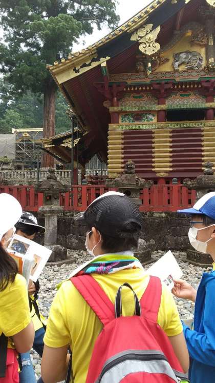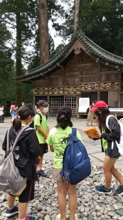行動班ごとに見学します。順番にガイドになり、調べてきたことを班の人に説明しています。