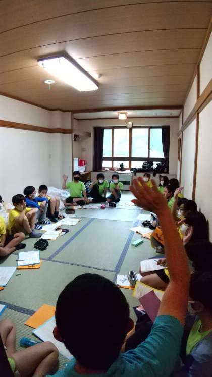 入浴の時間も昨日より長くとることにしました。待ち時間には、部屋ごとに今晩の出し物大会の練習をしています。楽しみです。