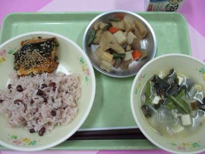 1月15日(金) 今日の給食 公開日 2021/01/15 更新日 2021/01/15 給食室より 1月15日(金)<今日の献立> ・あずきごはん ・さばの香り焼き ・いりどり ・えのきの味噌汁 ・牛乳 *1月15日は小正月です。 あずきの赤は、厄除けの意味もあると言われています。皆さんの健康を願ってあずきごはんを作りました。 いいね(0)