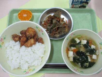9月29日(水) 今日の給食 公開日 2021/09/29 更新日 2021/09/29 給食室より 9月29日(水)<今日の献立> ・ごはん ・真鯛の香り揚げ ・五目きんぴら ・小松菜汁 ・みかん ・牛乳 *コロナの影響で外食産業が低迷した愛媛県産の「真鯛」を、今回給食に無償提供していただいたきました。今日は、下味をつけて油で揚げました。とてもおいしかったです。 いいね(0)