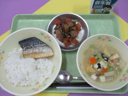 10月11日(月) 今日の給食 公開日 2021/10/11 更新日 2021/10/11 給食室より 10月11日(月)<今日の献立> ・ごはん ・さばの塩焼き ・御汁 ・さといものころ煮 ・牛乳 *今日は、福井県の郷土料理です。福井県は、西側が広く日本海に面し、東側には標高1000メートル以上の山々が連なっています。恐竜の化石も多く見つかっています。 いいね(0)